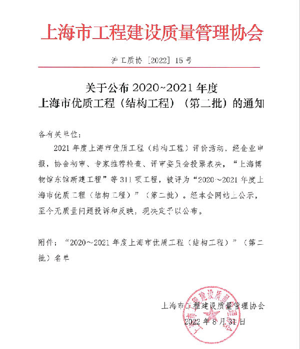 我校新校区一期东区2栋单体获得2021年上海市优质结构奖